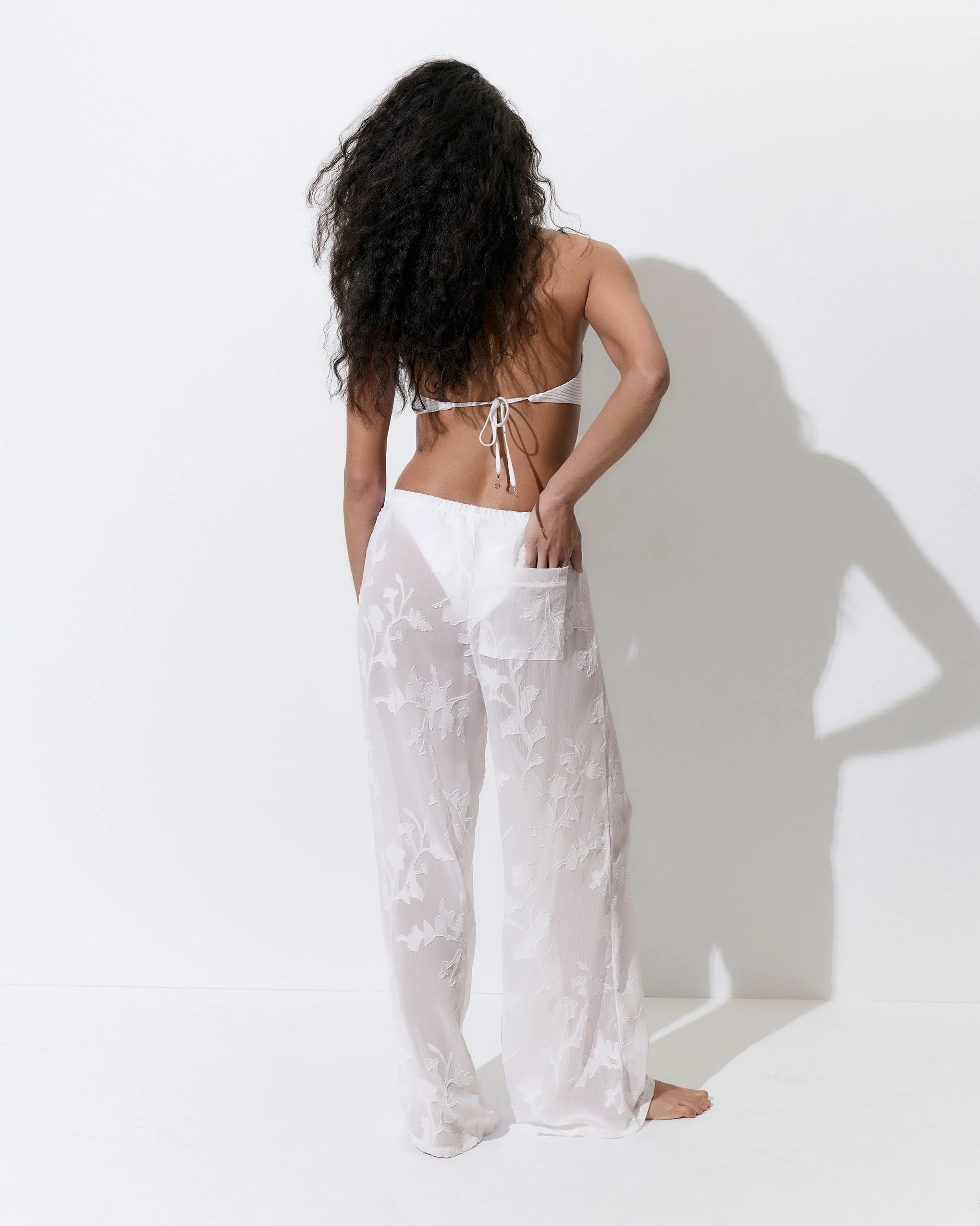 Complete your resort wardrobe with the Darla trousers. Crafted from a stunning floral jacquard fabric that creates a luxurious semi-opaque finish, with an elasticated waistband to ensure comfort. These versatile trousers transition effortlessly from beach to evening wear-you’ll be reaching for them again and again this summer.