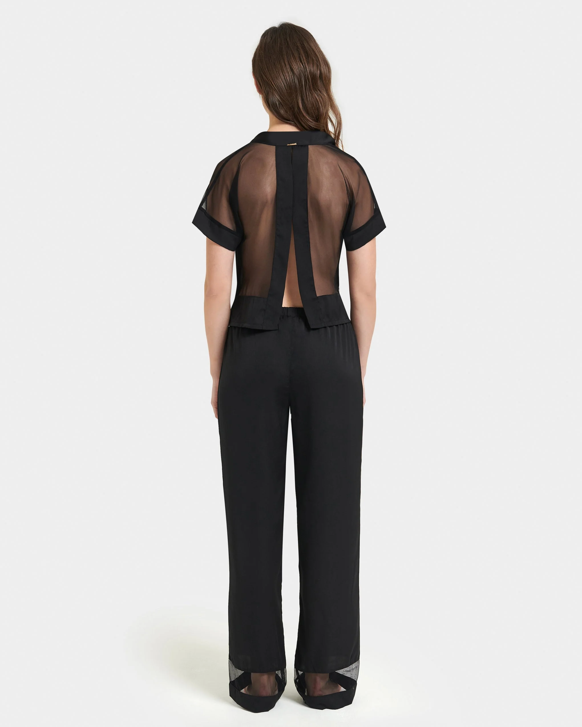 The Richmond set introduces a fashion-forward twist on traditional pyjamas. Playing with panels of soft jersey and delicate mesh, this elegant duo grabs the attention with a daring split to the reverse of the top. Enjoy it on relaxing evenings, or dress it up with your favourite heels as you head out for the night.